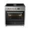 Der Steel Enfasi Pulse ist ein elegant gestalteter Herd, erhältlich in den Farben Inox (Edelstahl) oder Nero Fumo (Schwarz).
